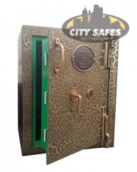 Heritage style Bulldog safe that is absolutely a one off. Finished in a black and gold crackle effect exterior and emerald green interior. All fixtures have been restored and are original. This safe is definitely a feature safe whilst still offering very good security as well as fire protection.
